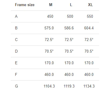 Groene aanbevelingFramemaat 45 cm Krpergre 150-165 cm Framemaat 50 cm Krpergre 165-180 cm GEOMETRIE